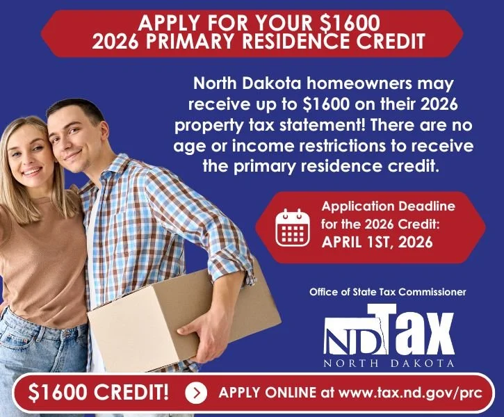 Qualified homeowners may receive a reduction in property taxes and qualified renters can receive a partial refund of their rent. On April 27, 2023, Governor Doug Burgum signed HB 1158 into law. This legislation broadens the eligibility requirements and maximum reduction amounts for those applying for the North Dakota Homestead Property Tax Credit program. This program is aimed at homeowners 65 years of age and older or those who are permanently and totally disabled. For a married couple, only one individual may apply for the credit. The applicant must live on and have an interest in the property.